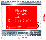 Echte Briefmarken? Die Finnische Post bietet seit kurzem ihren Kunden an, sich ihre eigenen Briefmarken zu gestalten. Zunächst war wohl nur an Unternehmen gedacht worden, die sich ihre „eigenen“ Briefmarken